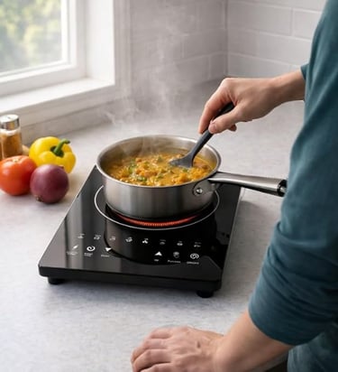 Feather Touch Control | 8 Preset Menus | Auto Cut-Off | High Power Induction Stove | BIS Approved | Black | 2-Year Warranty