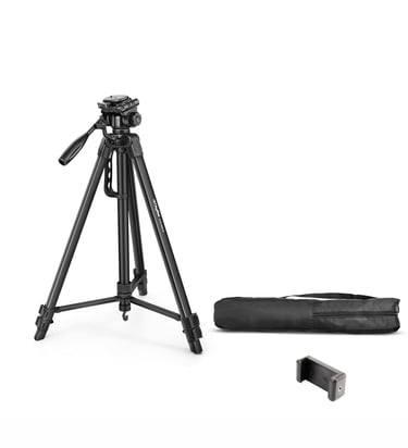 with Phone Holder & 360° Ball Head, 5kg Load Capacity, Aluminum Alloy Legs with Rubberized Feet & Flip Locks, Carry Bag, for Photo & Video Shoots